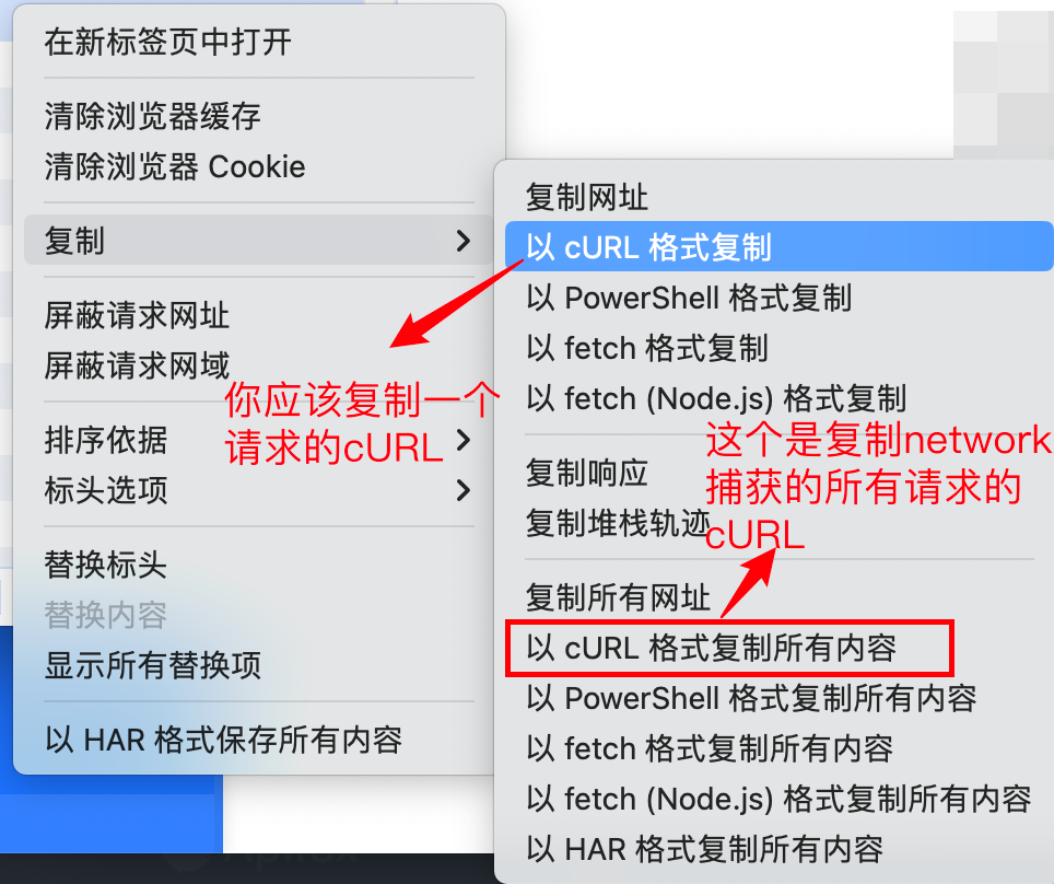 我的朋友,你要看清楚!别复制全部的cURL,定位问题,一般只需要1个请求的cURL