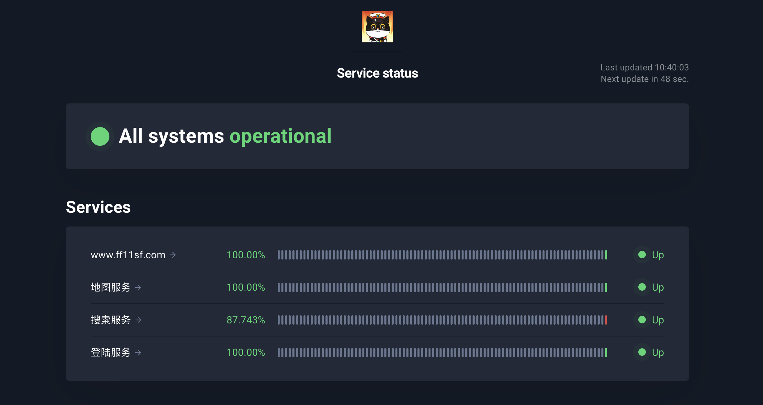 note:他是一款可免费使用的服务监控检测,并提供一个公网监控页面,展示相关的健康监控结果。