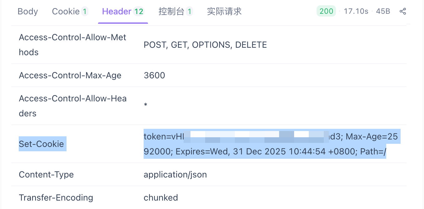 获取响应头Set-Cookie中的token值,设置为全局变量