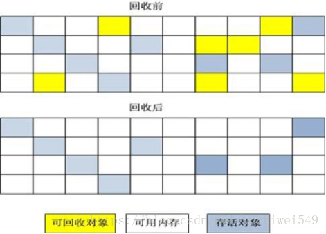它将可用内存按容量划分为大小相等的两块,每次只使用其中的一块。当这一块的内存用完了,就将还存活着的对象复制到另外一块上面,然后再把已使用过的内存空间一次清理掉。