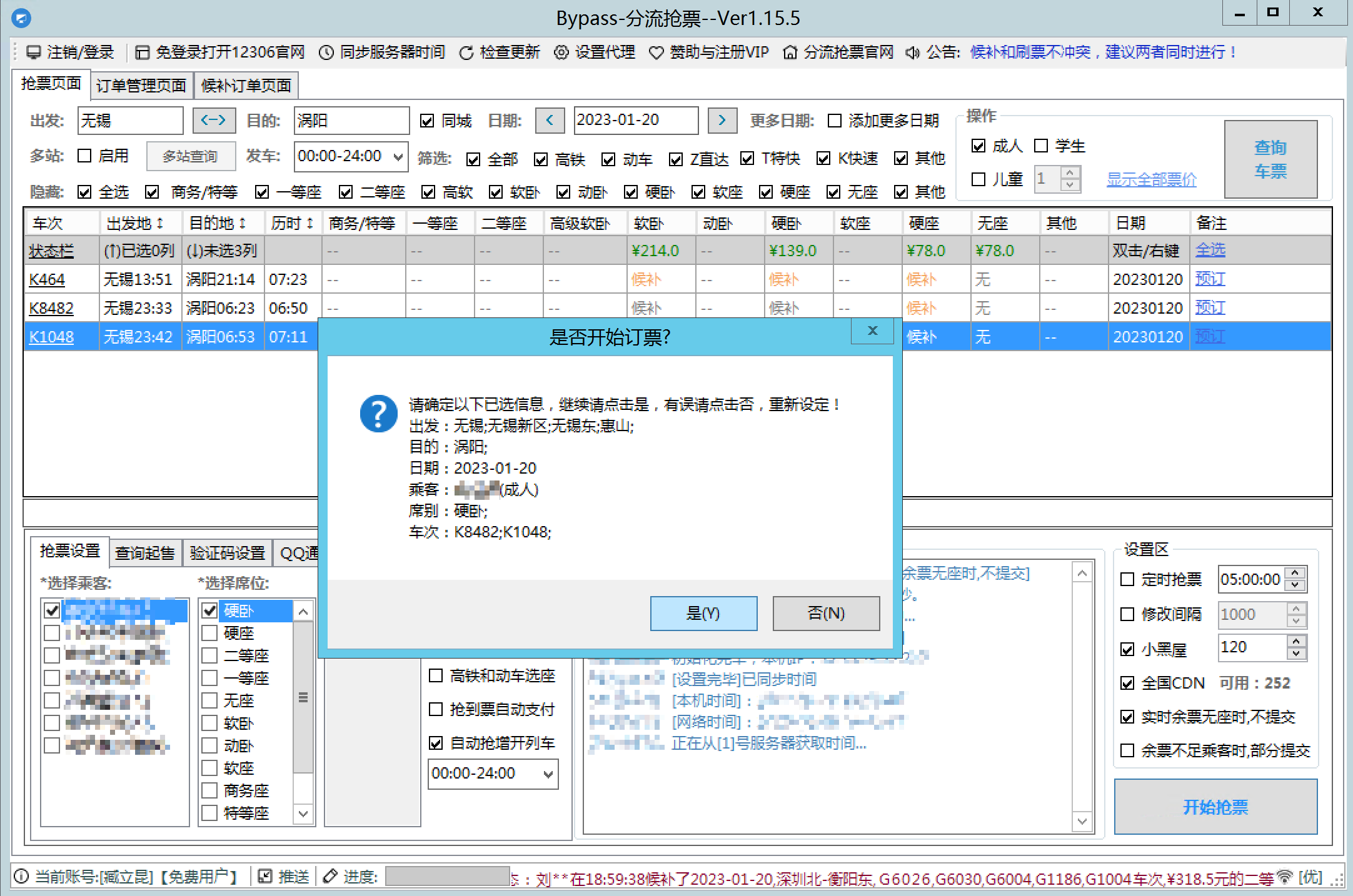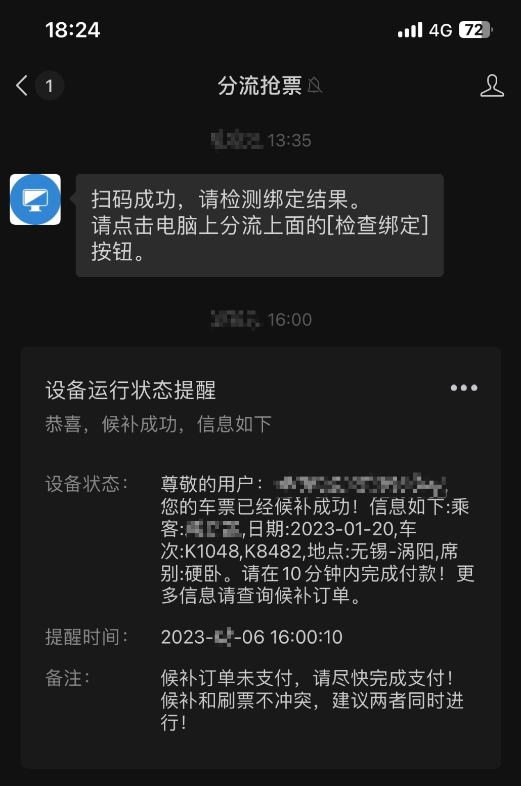 原理:抢票是不停的刷新,如果有票就下单,没票就继续等待。记住:抢到候补的时候,最好也使用软件继续抢票!