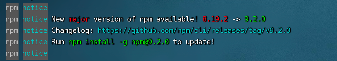 此时可能会让你执行更新npm的操作,你按照提示执行即可升级npm,然后在执行上面的命令