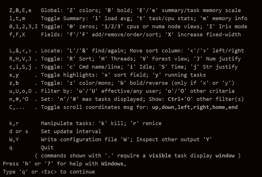 "q" 是退出,不进入设置显示 一样可以退出top 命令