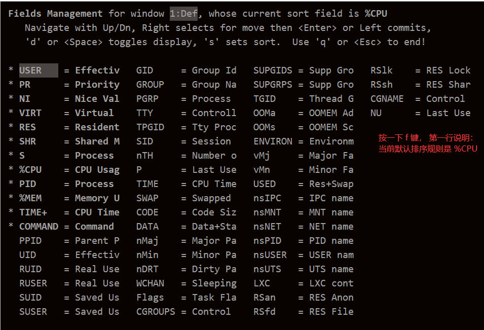 • COMMAND 进程名或启动的命令行(通过 c命令切换)