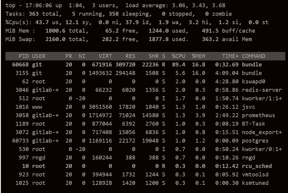 load average 后面的三个数分别是5分钟、10分钟、15分钟的负载情况,如果这个数除以逻辑CPU的数量,结果高于5的时候就表明系统在超负荷运转了