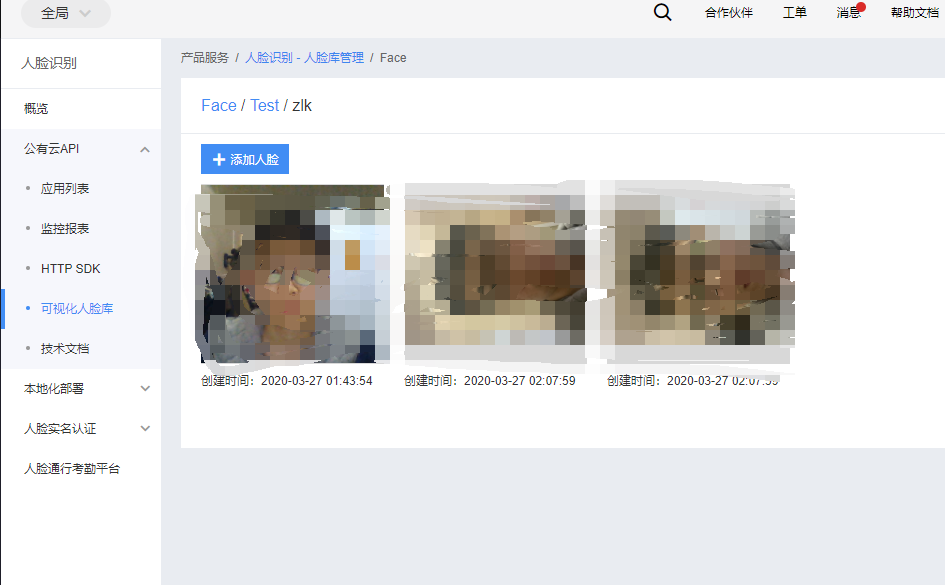 自己去申请 应用账号、密钥,然后创建人脸库、库中组、组中用户、上传自己的照片
