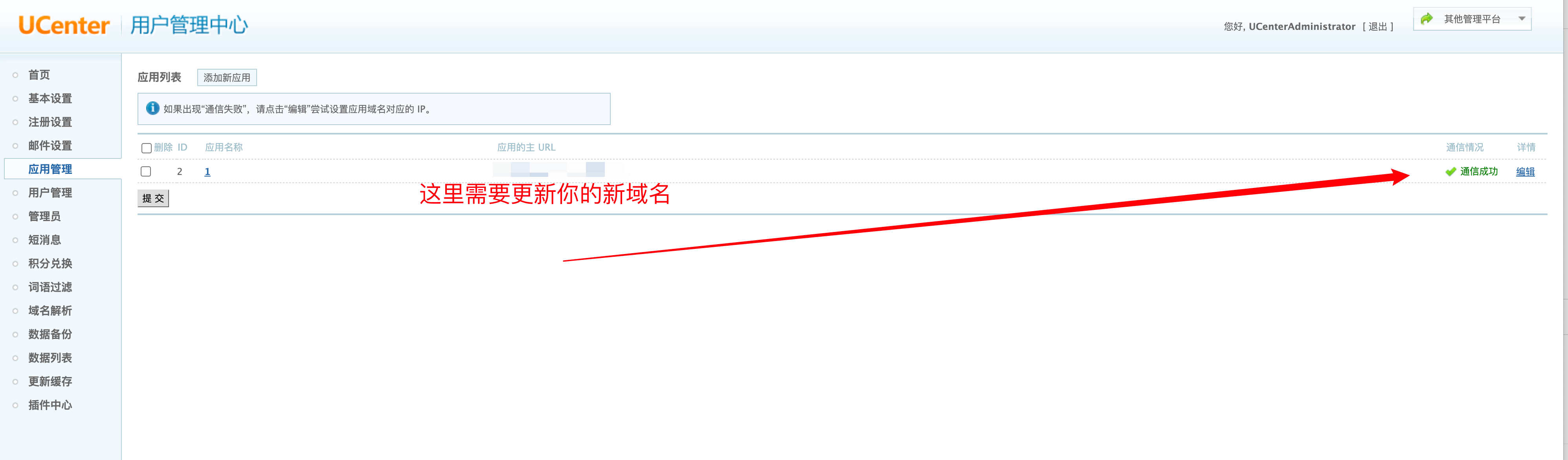 我们需要去UCenter 用户管理中心 设置一下