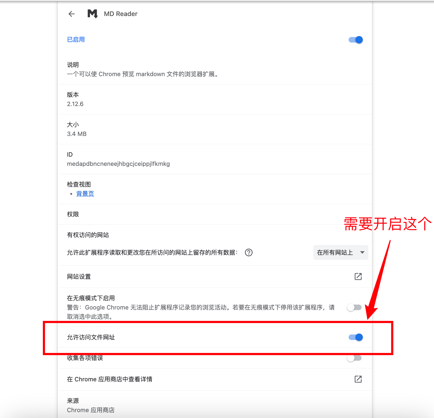 本地有一个Markdown,里面记录的是一些超链接,我们肯定希望这个超链用于跳转不同的地址。但是Chrome默认是不会支持Markdown文件的,所以我找了一款插件支持此方式去阅读Markdown文件,注意:只是阅读,不可编辑。