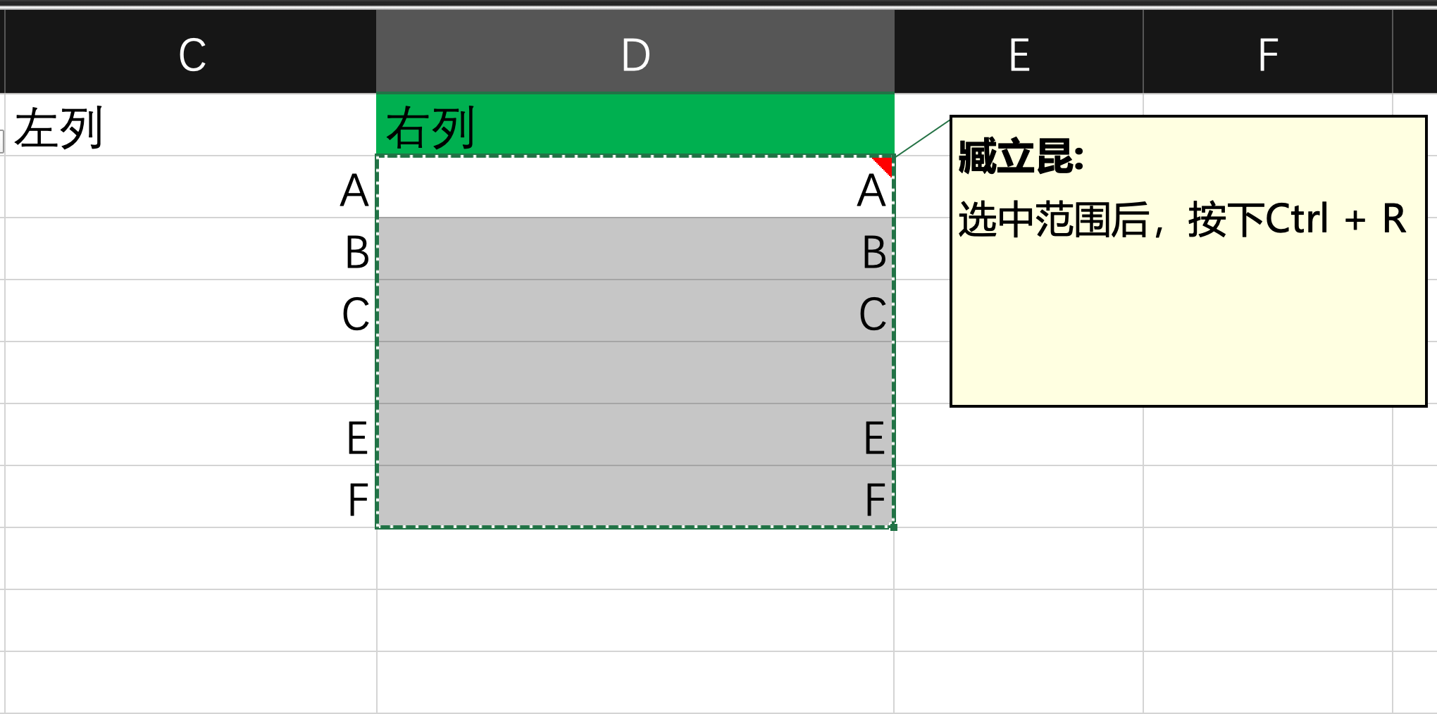 快捷键是 Ctrl + R(R就是Right,向下的意思)。