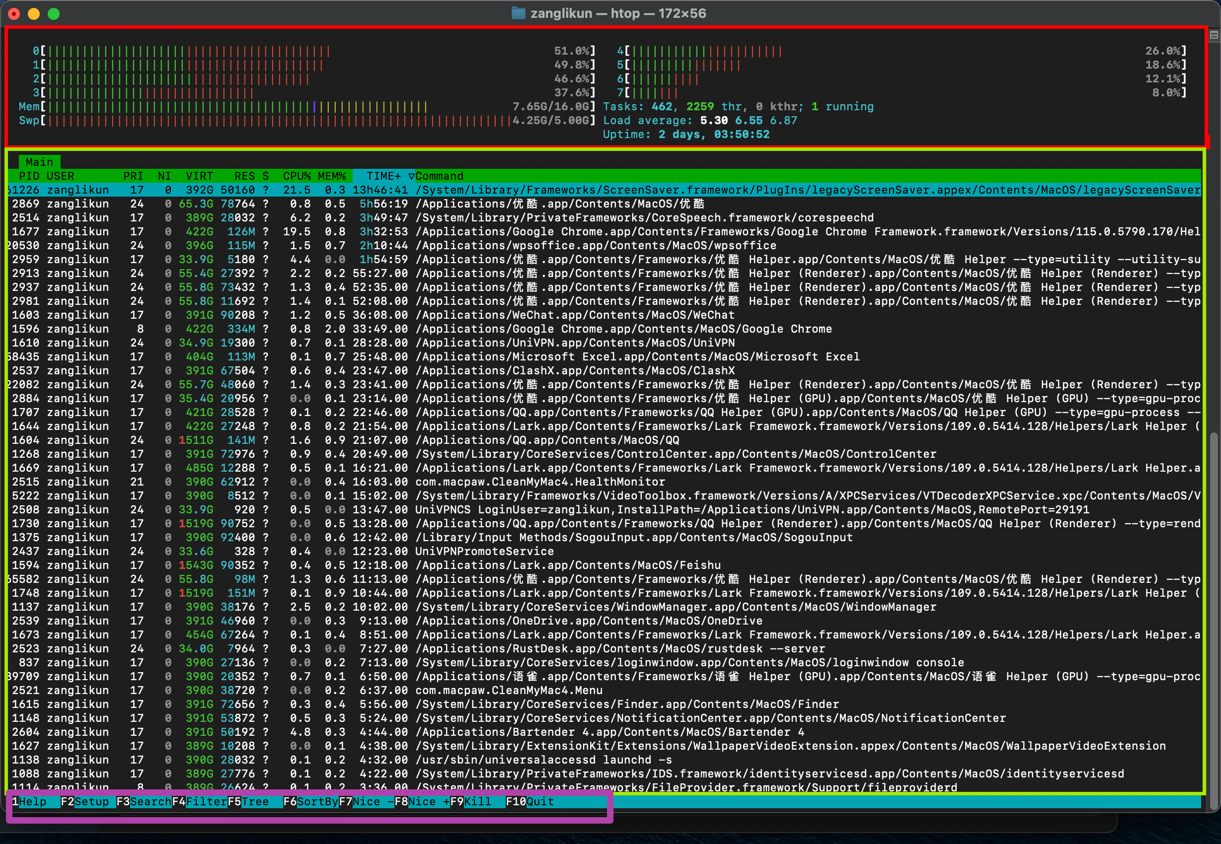 使用 htop,您可以更直观地了解系统中的进程活动和资源利用情况,以便更好地监控和管理系统性能。