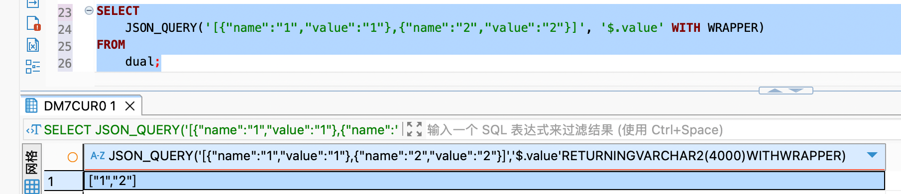 JSON_QUERY:https://eco.dameng.com/document/dm/zh-cn/pm/json#18.2.1.3%20json_query