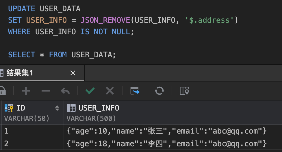 3. JSON_REMOVE 删除 JSON 键与值示例