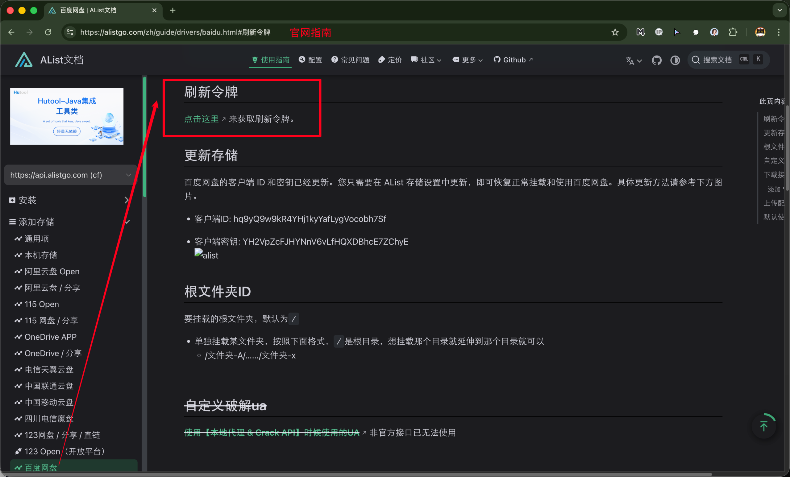 https://alistgo.com/zh/guide/drivers/baidu.html#%E5%88%B7%E6%96%B0%E4%BB%A4%E7%89%8C