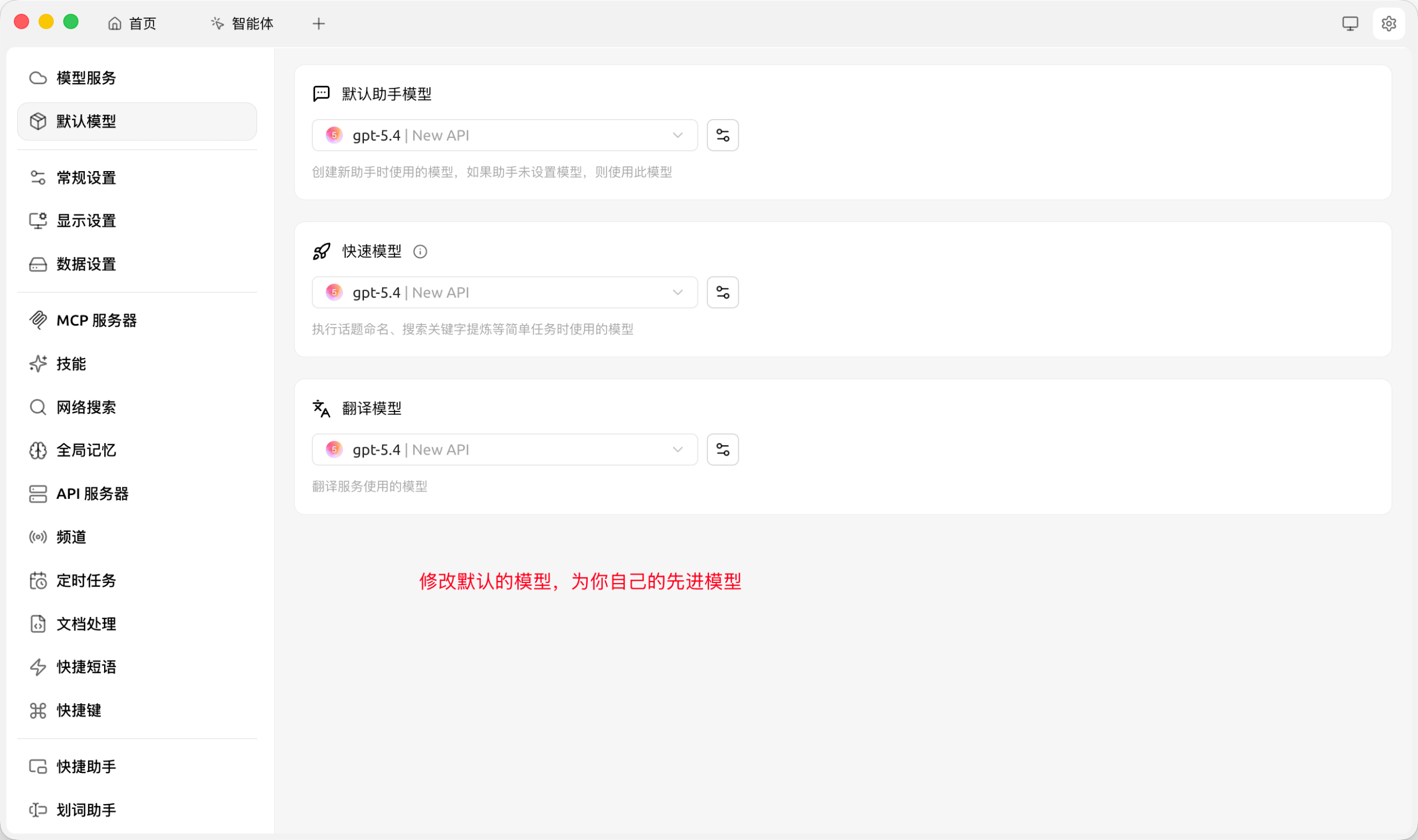 切换默认模型助手