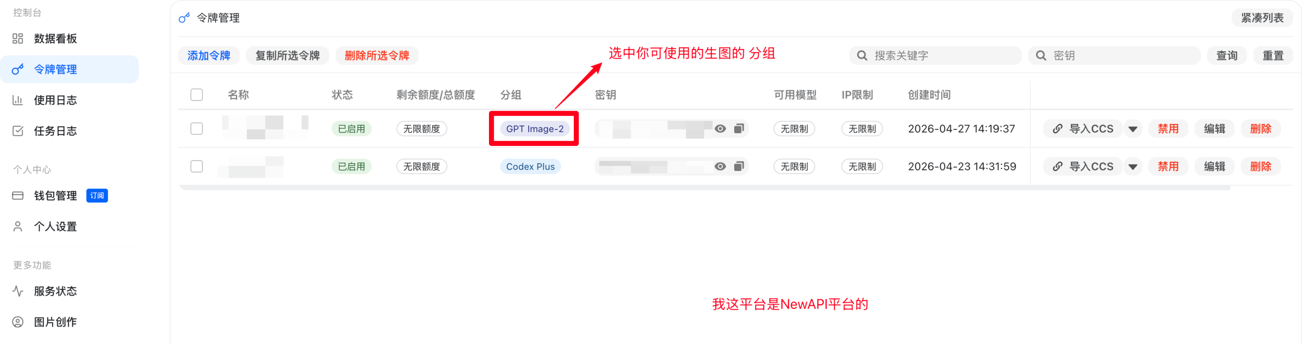 配置,具体需要找你自己的中转平台的秘钥与API地址,注意的ApiKey的分组一定要支持生图才可用哦