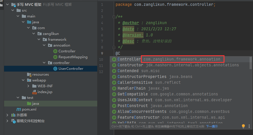 import com.zanglikun.framework.annoation.Controller;