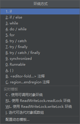 选中任意代码 Ctrl + Alt +T 快速Try catch