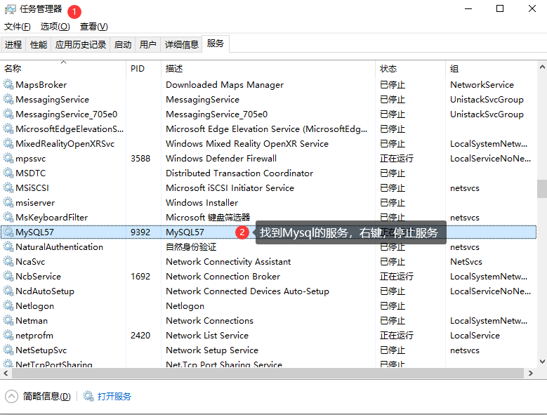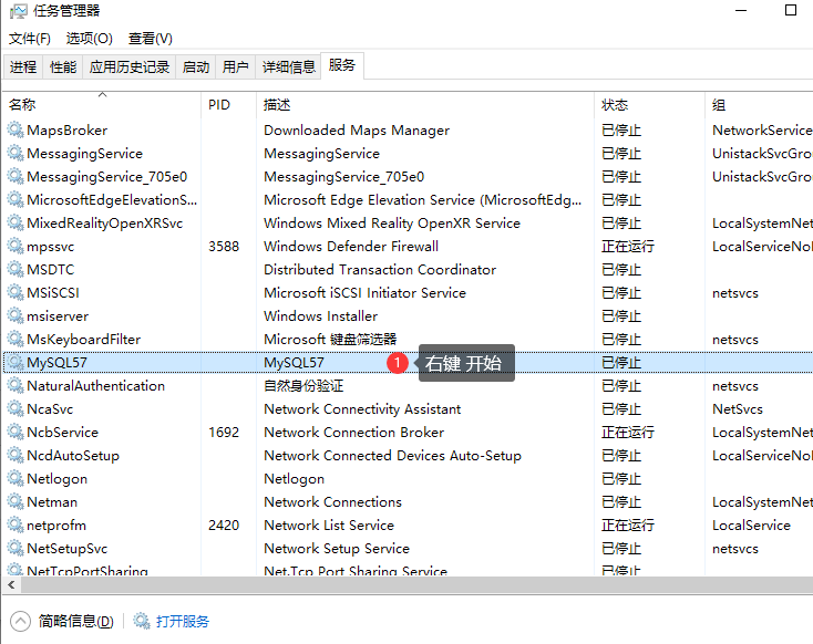 保存文件,去任务管理器 -启动mysql服务
