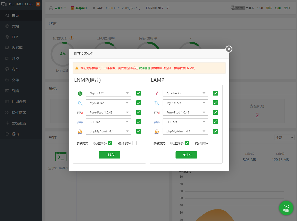 Linux 安装Mysql 是必须的一步 ,选择宝塔 一键部署