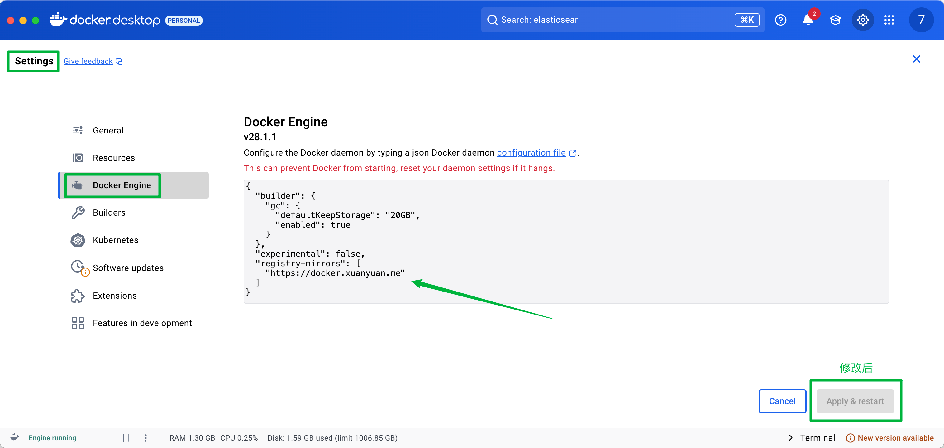 #下载加启动ElastcSearch 注意,此命令敲后,内存会激增,ElasticSerarch大约被使用了1.28G了 但是Docker自身占用了内存也会变高。