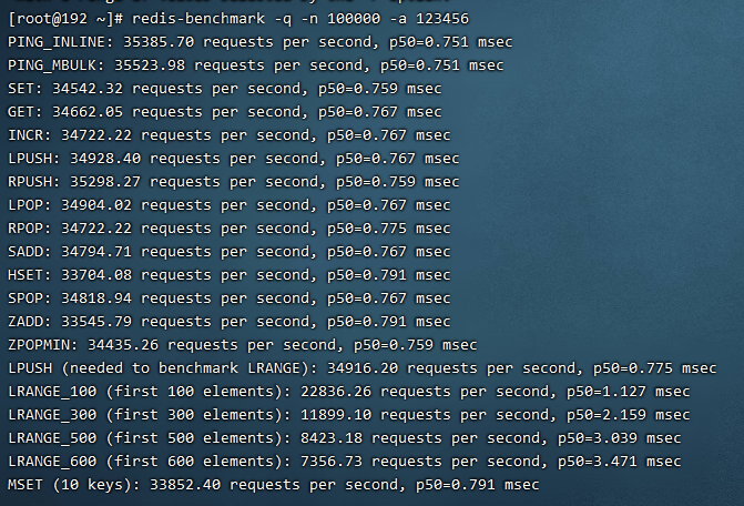 ./redis-benchmark -q -n 100000 -a 密码 -p 6379