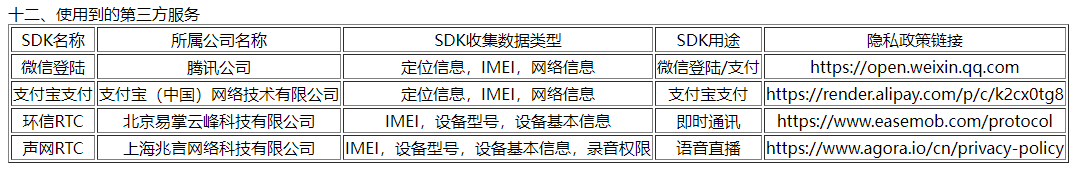 务必在隐私政策里声明:使用到的第三方服务 ↓