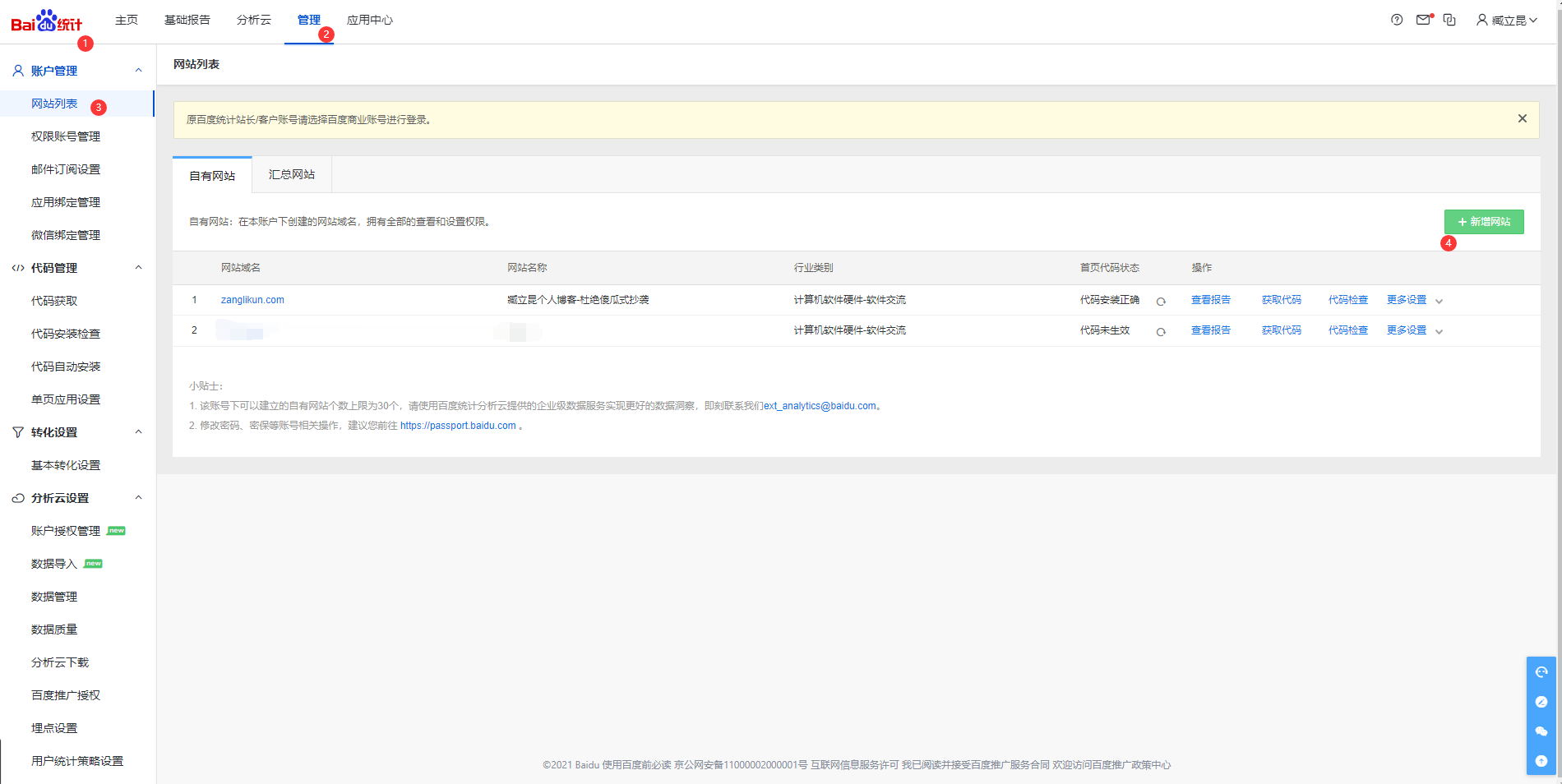 添加完成后,就完成了接入了!之后就可以正常使用百度统计带给我的用户信息了!