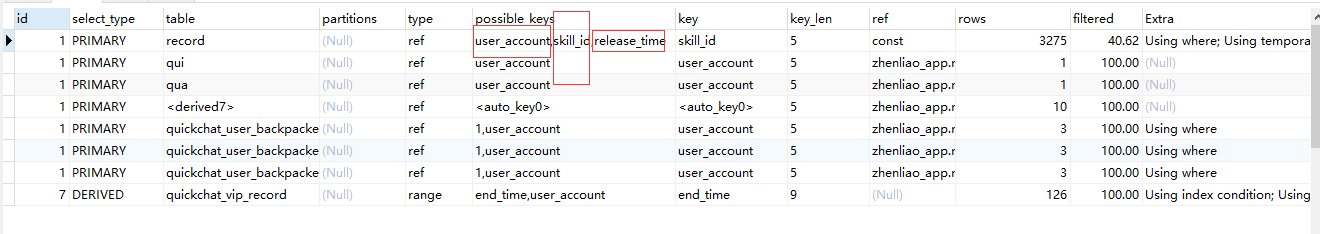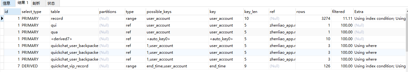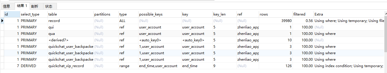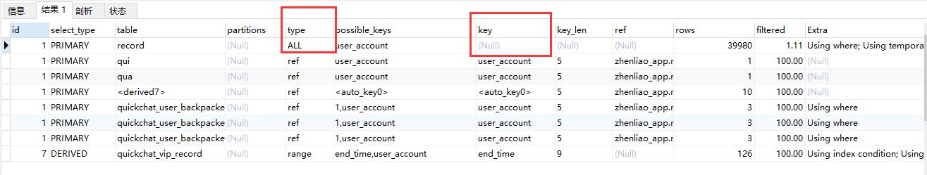 发现table是record的记录的type是ALL,说明我们需要盘他!Ctrl + F 搜索record 看看where有没有被索引使用的字段
