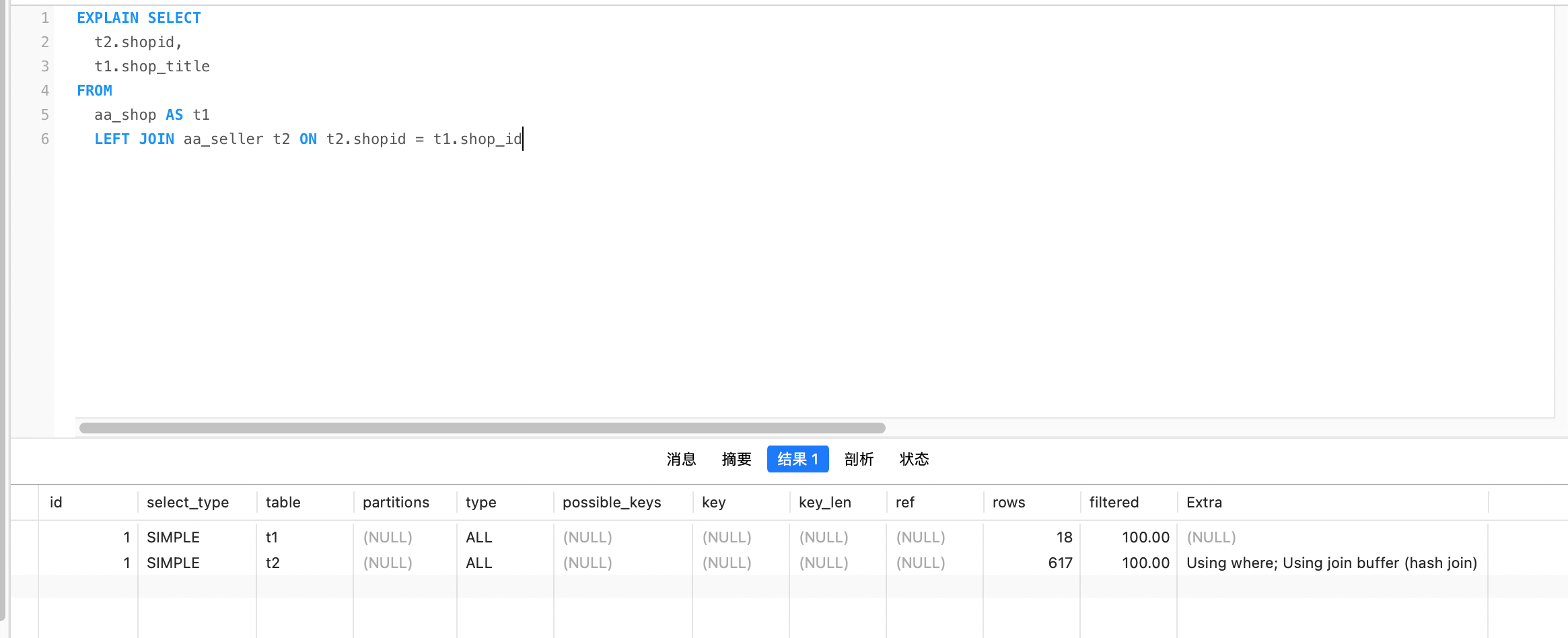 注意:不同MySQL版本不见得是同一个结果哦!所以具体SQL具体分析。一个SQL的Explain结果一般只能通过执行完毕之后看得到。人为猜测不可靠,市面上也没有好办法,只能通过大量经验砸出来!但依旧无法100%准确!