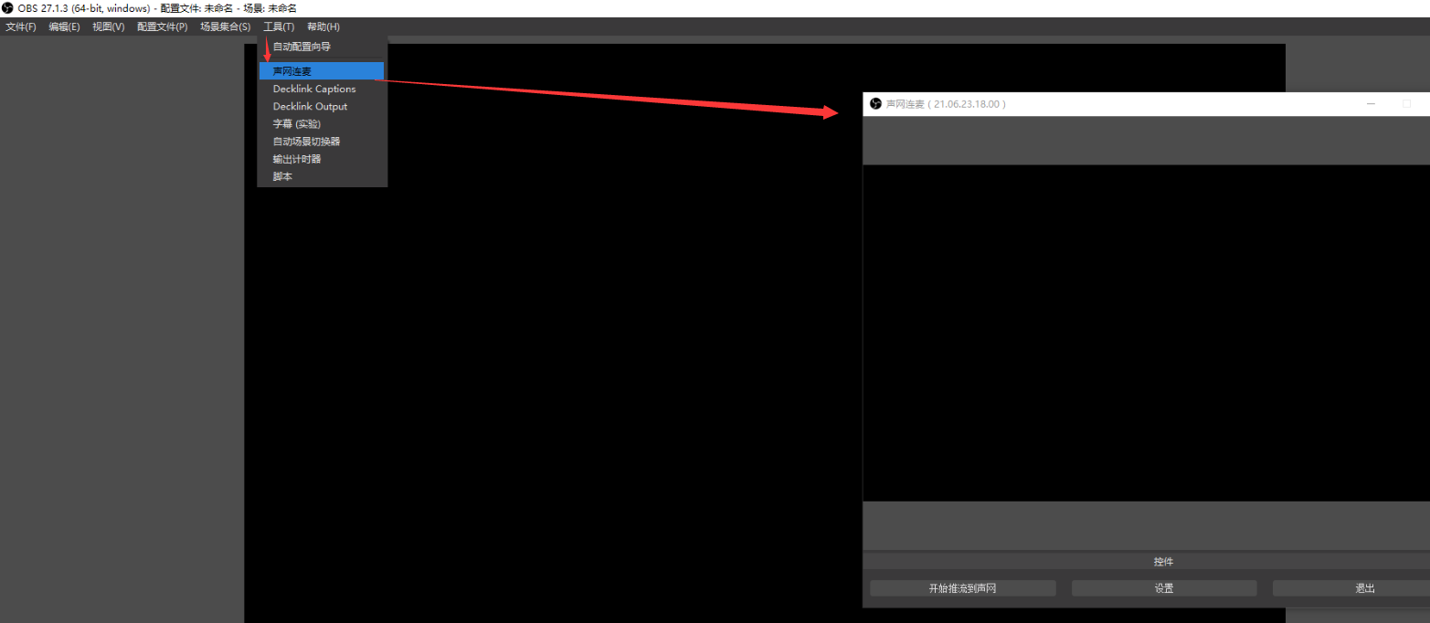 自行安装完成后,查看一下OBS-工具 下面是否有声网连麦选项