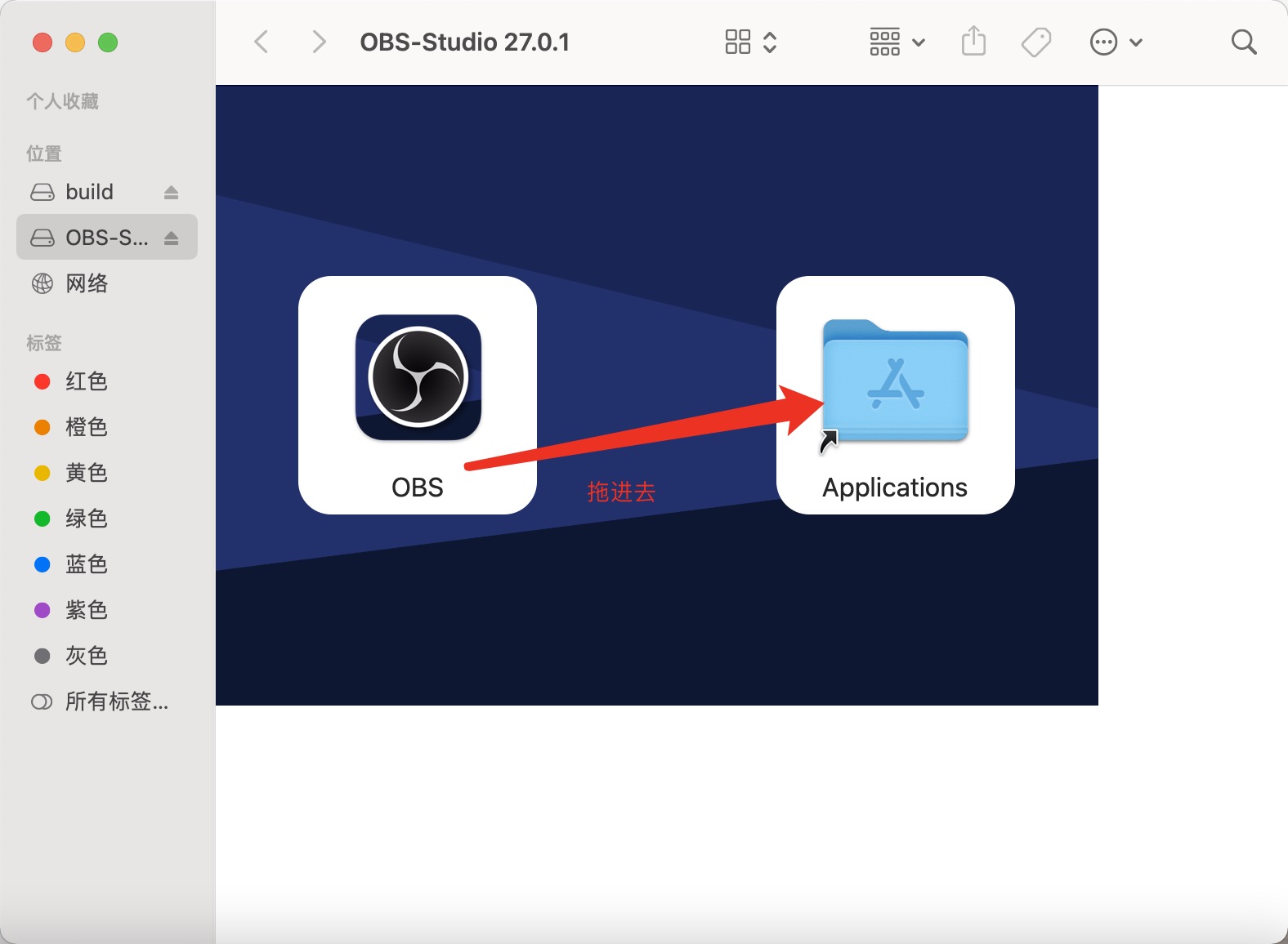 注:Mac安装OBS时,需要将OBS 拖入 Applications 安装的声网插件才有效