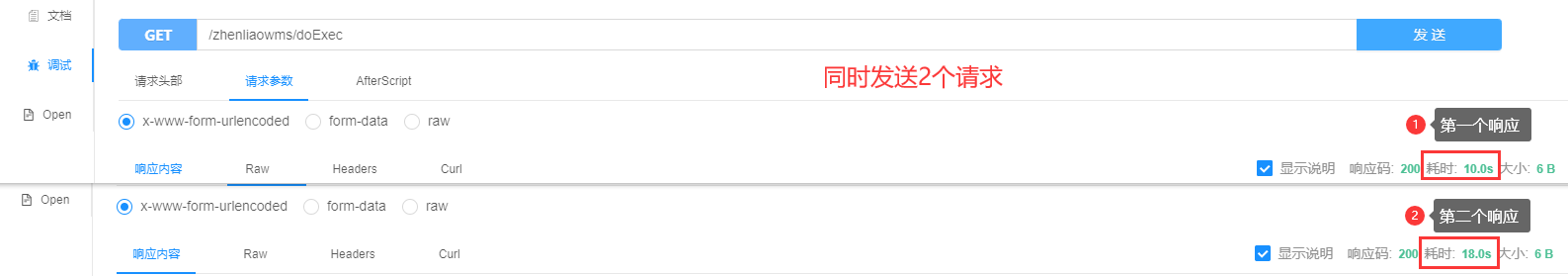 同时发送2个请求,结果如下:串行执行