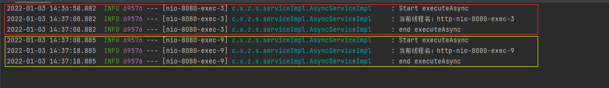 2021-12-30 18:47:22.841  INFO 15728 --- [Async-service-2] c.x.z.s.serviceImpl.AsyncServiceImpl     : Start executeAsync