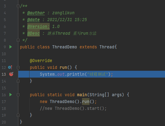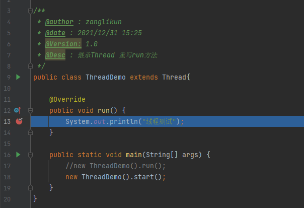 * @Desc : 继承Thread 重写run方法