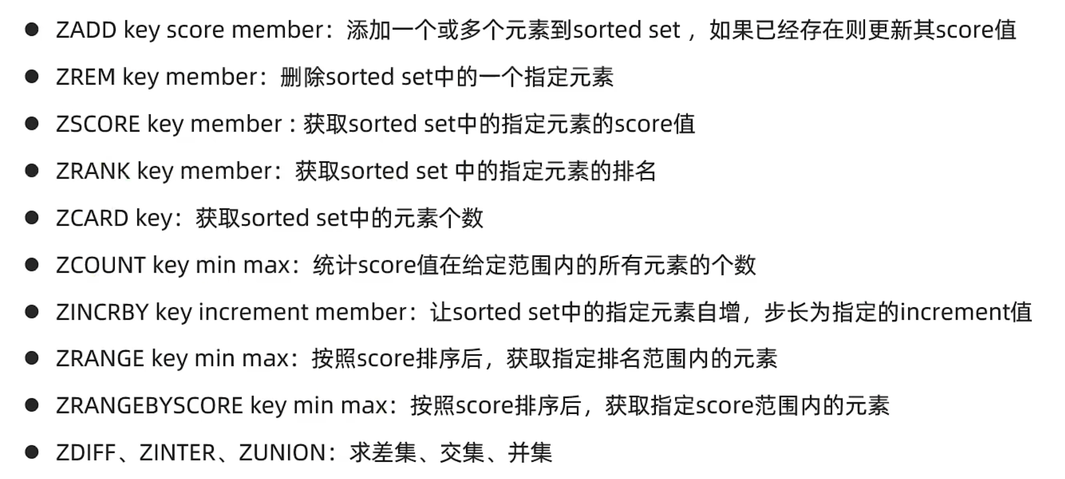 SortedSet基本命令:类似于TreeSet 可排序、不可重复。常用于排行榜